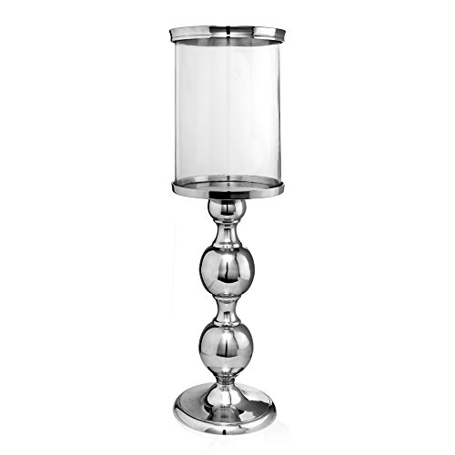 - This custom Made accessory to decorate your home is an aluminum XL tall modern hurricane candleholder with glass shade and deco top metal ring