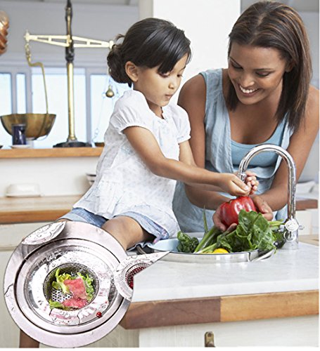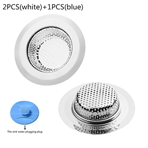 2PCS Stainless-Steel Kitchen Sink Strainer - Large Wide Rim 4.5" Diameter - 1PCS Sink Water Plugging Plug (Bule)