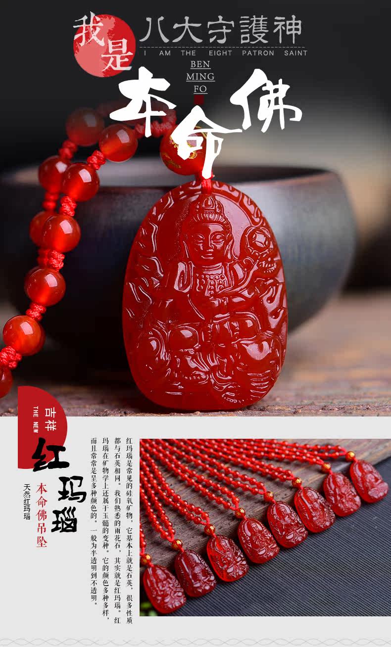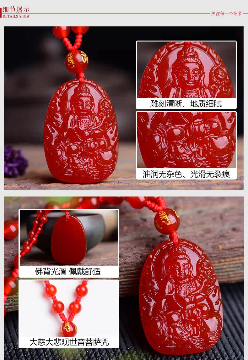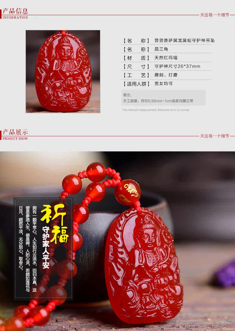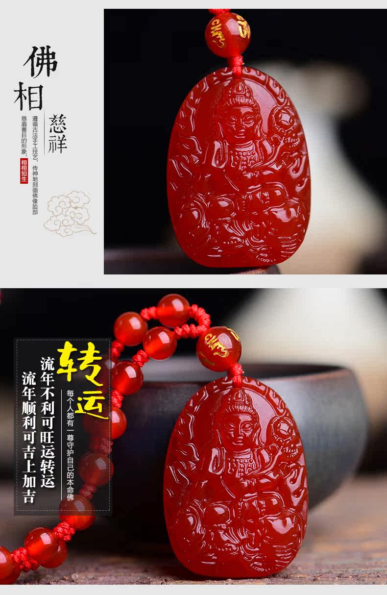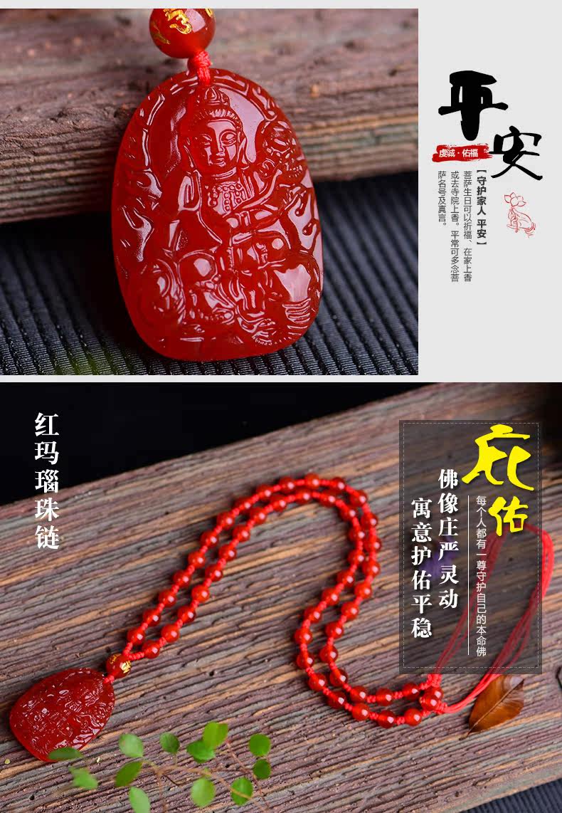 开光天然红玛瑙普贤菩萨吊坠 生肖属龙蛇本命佛守护神男女项链