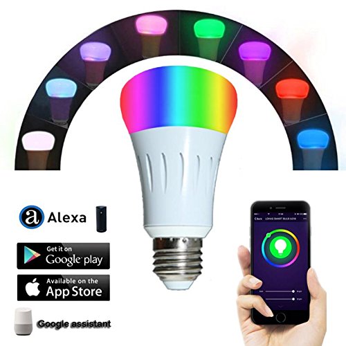 Smart light bulb,Works With Alexa,Dimmable Multicolored Color Changing Lights,Smartphone Free APP Control,7W New Version