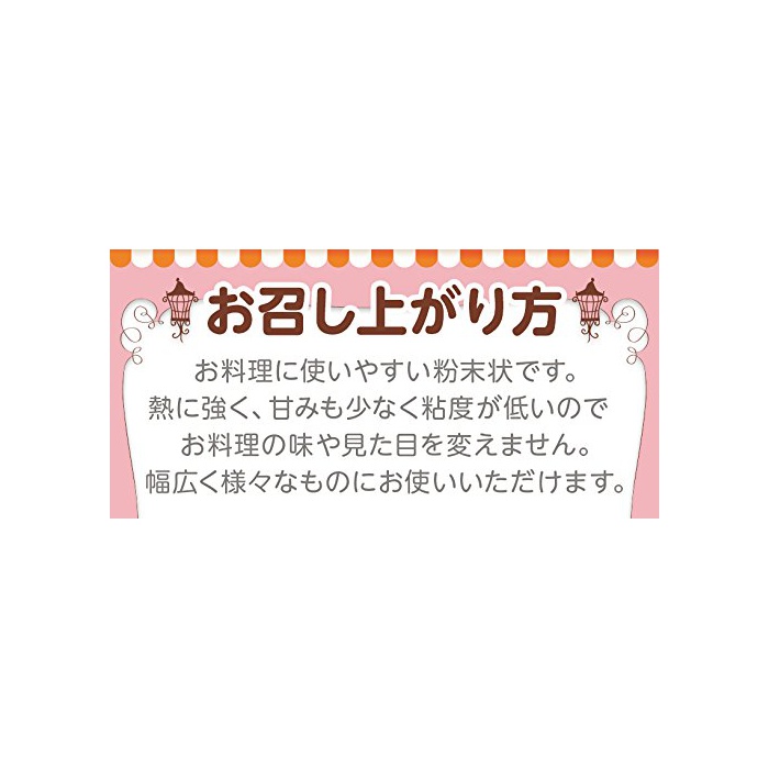 【영양 성분표(100g당)】에너지:114kcal,단백질:0.0g,지질:0.0g,탄수화물:94g(살짝(완전히) 수용성 음식물 섬유:85g이상)고, 나트륨:0.54mg,수분:6g,회분:0.0g