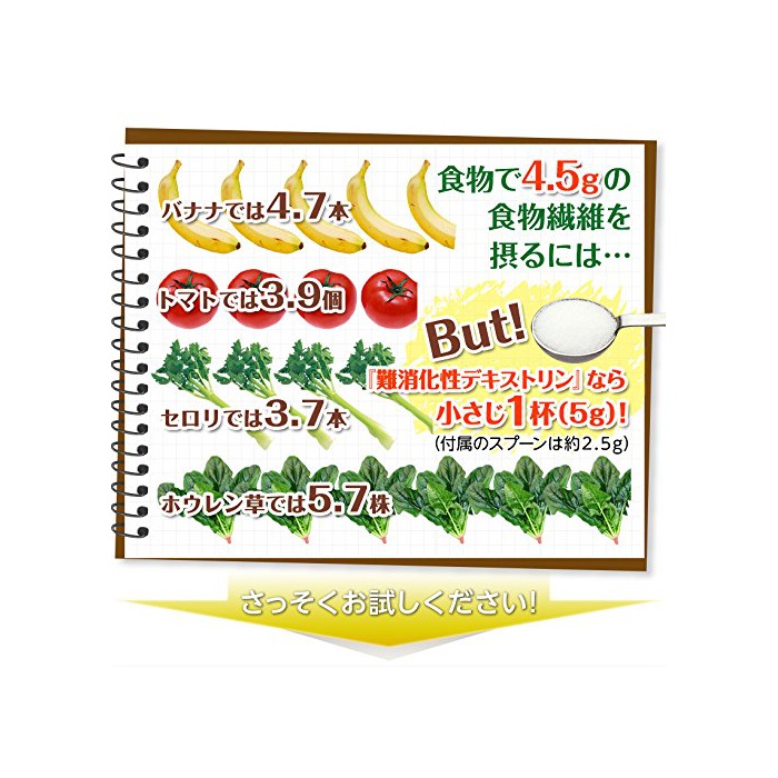 음식물 섬유는,우리들의 건강하게 빠뜨리지 않는 중요한 영양소의 하나입니다.음식물 섬유를 잘 이용해 건강인 내일의체를 제조합시다.부속 스푼1 배3g에,약양상추1개분의 음식물 섬유