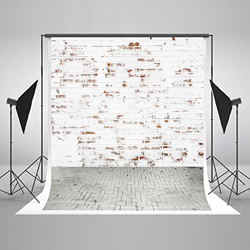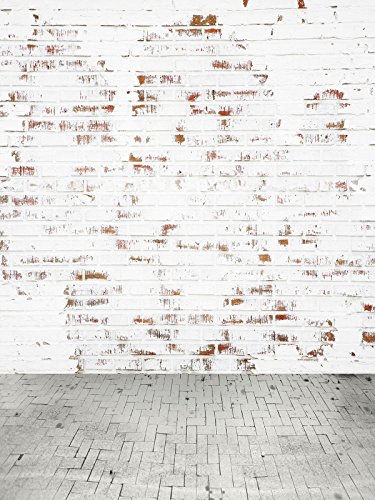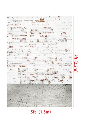 5x7ft Cotton Polyester White Brick Wall Gray Road Party Decorations Photo Backdrop Seamless Folding and Washable No Wrinkle Photography Studio Background