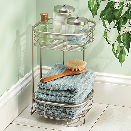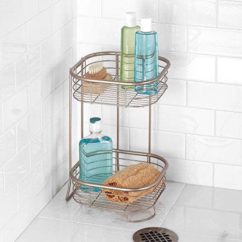 mDesign Free Standing Bathroom or Shower Storage Shelves for Towels, Soap, Shampoo, Lotion, Accessories - 2 Tier, Satin