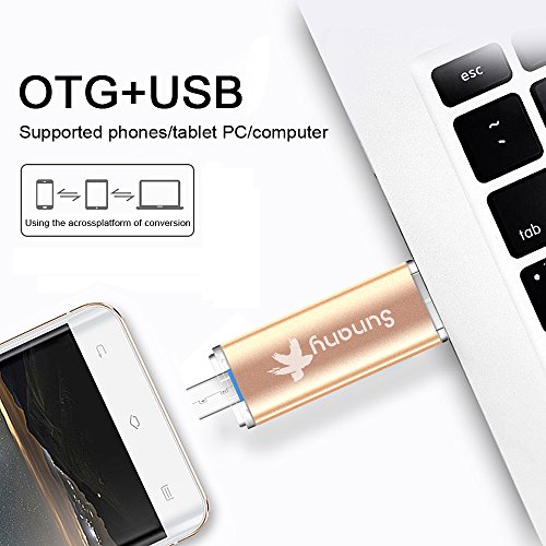 Sunany Metal USB Flash Drive USB 3.0 OTG Pen drive with Dual USB Connectors For Otg-functional Android Phone/PC(16GB Gold)