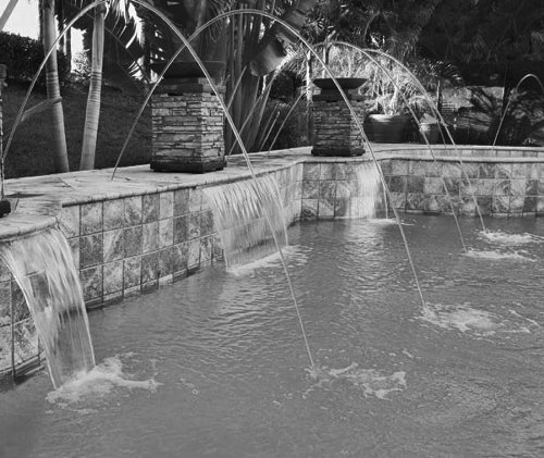 - Laminar water streams can reach up to 7 feet high and project outward up to 8 feet into your pool, spa, or other water feature.
