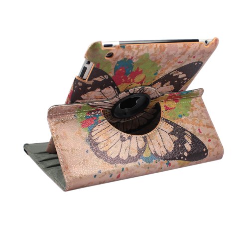 FOME 360 Degrees Rotating Stand PU Leather Flip Case Cover for iPad 2 3 4 Butterfly + A FOME Clean Cloth Gift