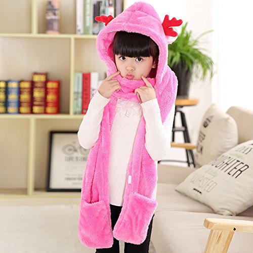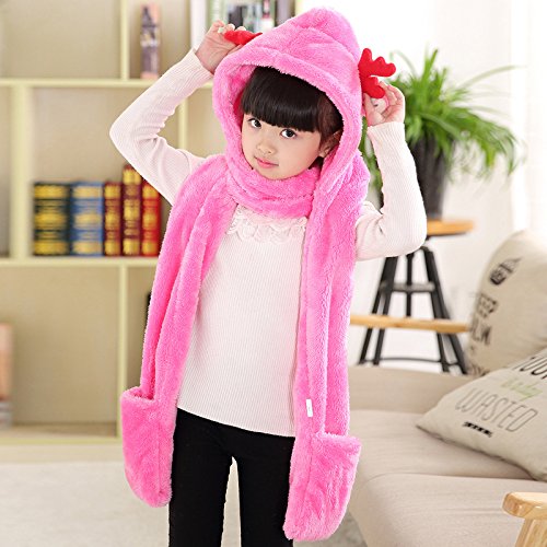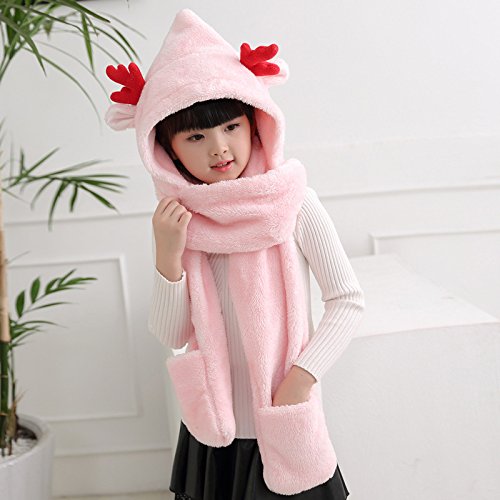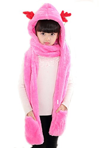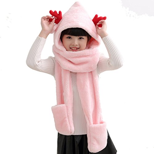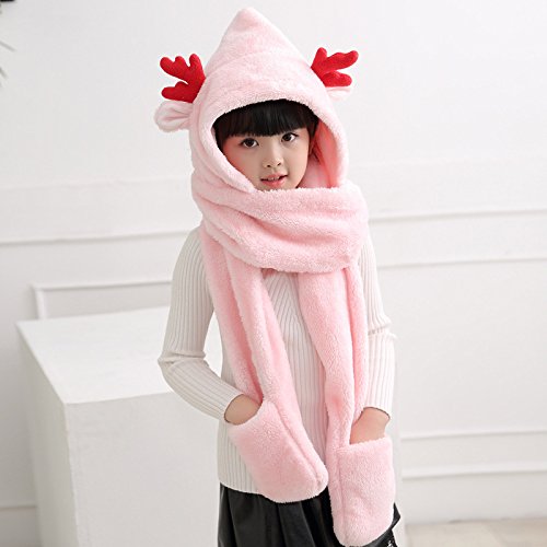 (FeelMeStyle)/Accessories/Cold Weather Accessories/DIRECT FROM USA/FeelMeStyle Kids Winter Warm Hooded Scarf with Mittens 3-in-1 Hat Scarves Glove