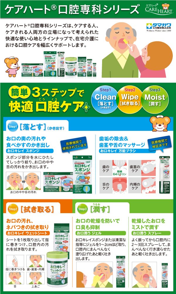 ◆ At such a time ● To assist in oral care ● To finish care after each meal ● Before going to bed ● Before removing dry soil ● When bad breath is worrisome ◆ To such a person ● The mouth is easy to dry