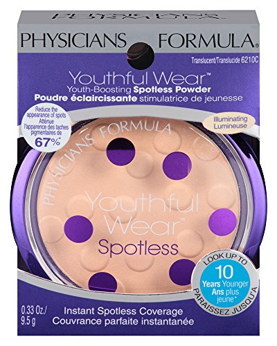 Say Goodbye to Spots Skin-protecting and brightening powder effectively even outs skin tone working to extend the wear of foundation so your complexion remains flawless. Powerful, brightening cosmeceutical ingredients help improve the appearance of dark spots, age spots, and sun spots instantly and over time. Formulated with Spotless Technology, clinically proven to erase the look of up to 20 years of natural skin darkening. Broad spectrum SPF 15 protects skin and helps to prevent new spots or discoloration from developing. Look up to 10 years younger instantly Proven Visible Results- 100% Saw brighter and more even skin instantly. 90% Saw less visible sun damage in 2 weeks. 100% Saw significantly lighter dark spots in 3 weeks and less dark spots overall in 4 weeks. 100% Saw less fine lines and deep wrinkles in 3 weeks. Based on average measured results from a panel of women using Youthful Wear Spotless Makeup. Results are based on a comparison of subjects before without makeup on and after with makeup on. Based on the individual perception of a panel of women using Youthful Wear Spotless Makeup.Feature