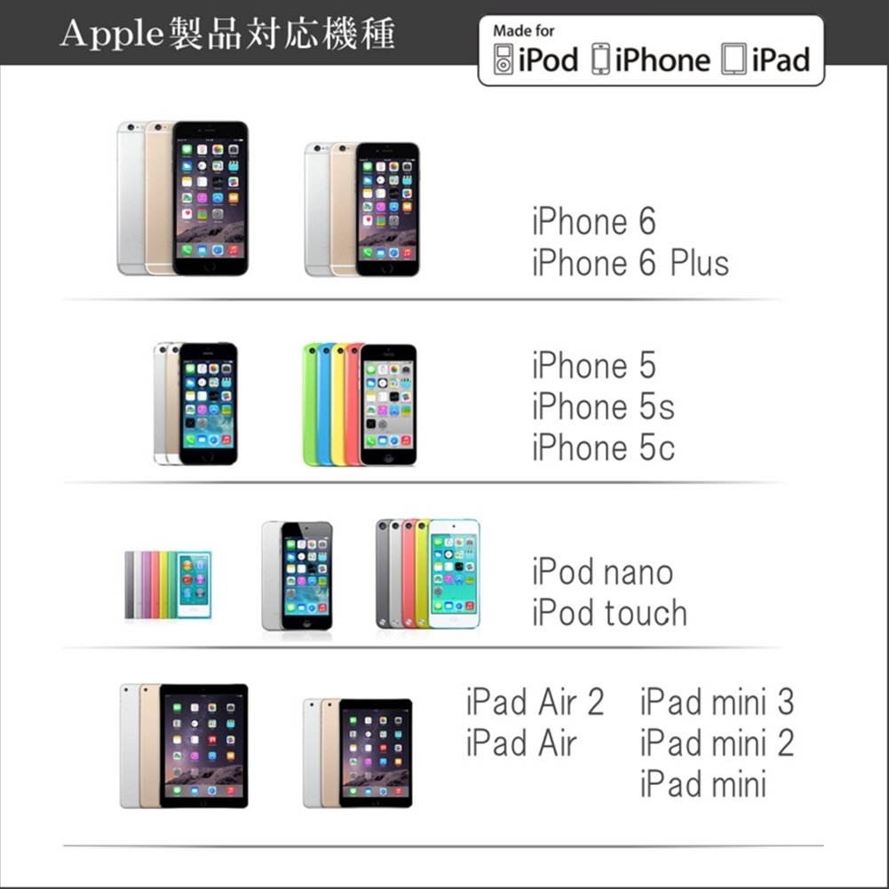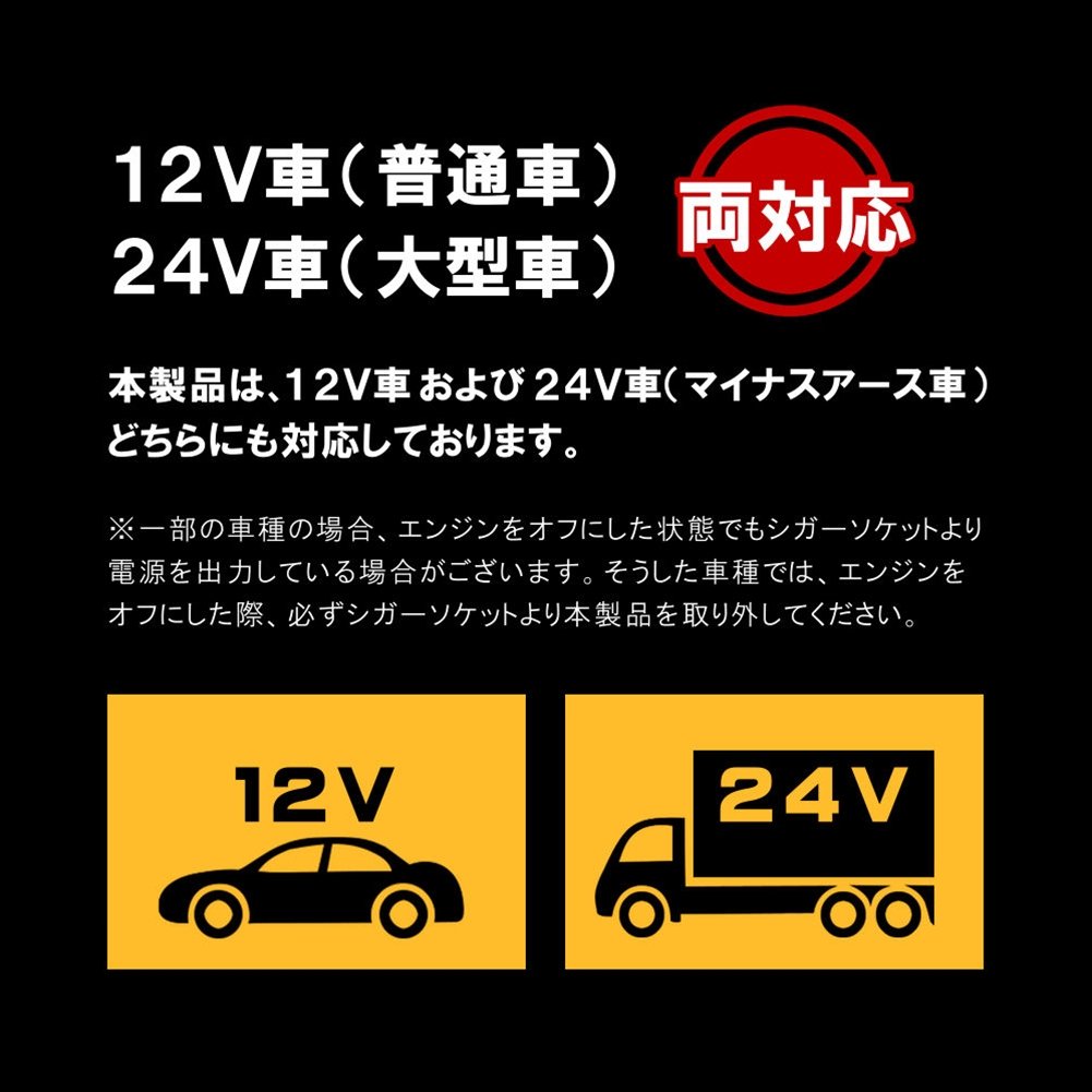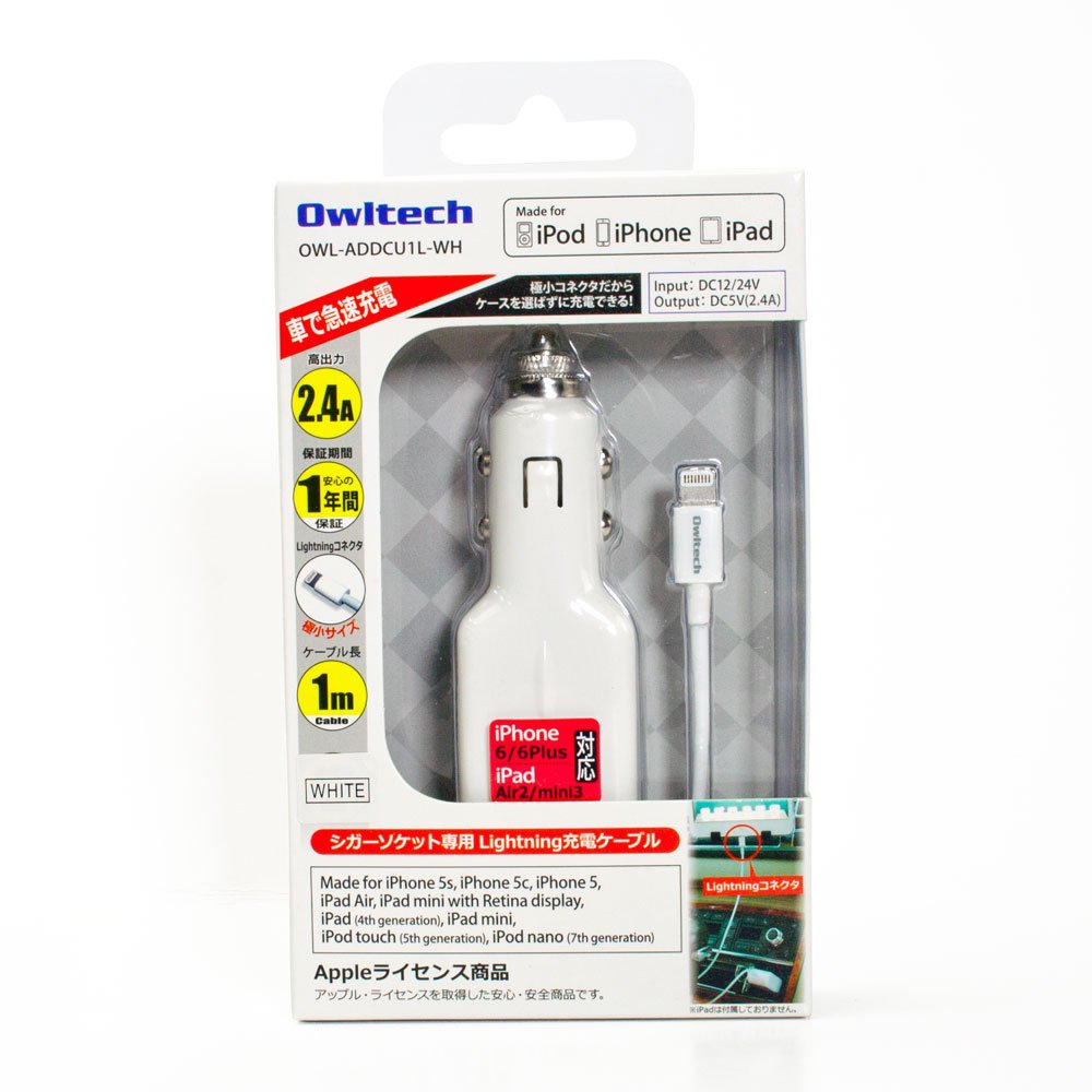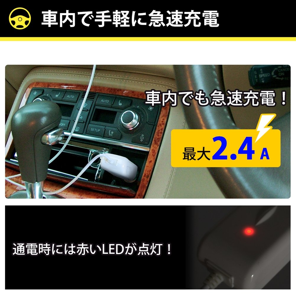 Ourutekku iPhone6s / 6sPlus / 6 / 6Plus / 5s / iPad Air / Air2 / mini4 etc. corresponding Apple Certified Lightning cable-integrated 2.4A high output corresponding cigarette lighter charger 12V / 24V