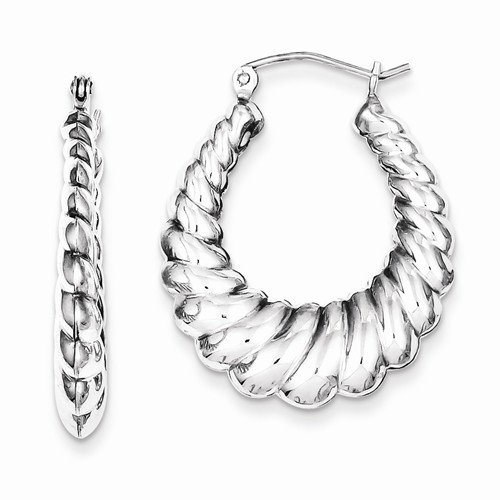 925 Sterling Silver Shrimp Hoop Puffed Scalloped Earrings (30mm x 25mm)
