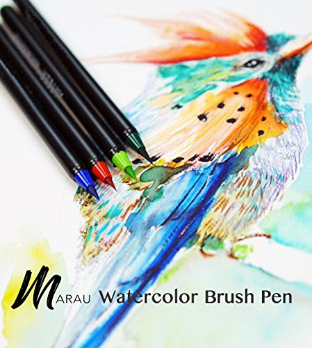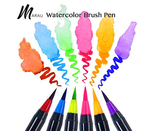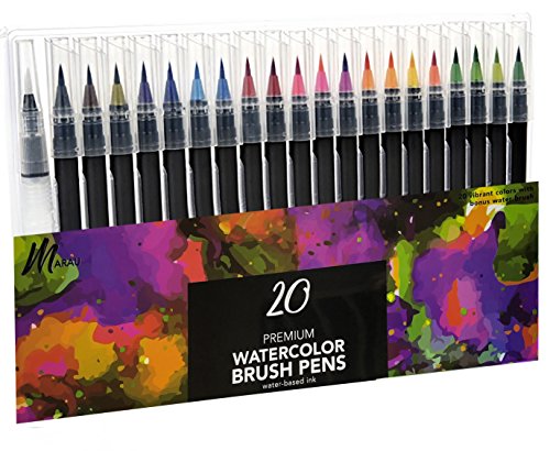 Marau Watercolor Brush Pen Marker - 20 Vibrant Colors with Blending Brush, Real Brush Tip, Premium Grade, Used for Calligraphy, Manga, Journaling, Coloring Books, Painting