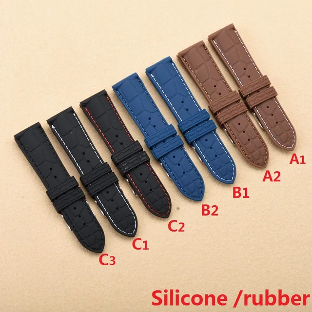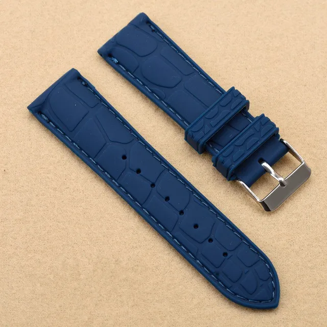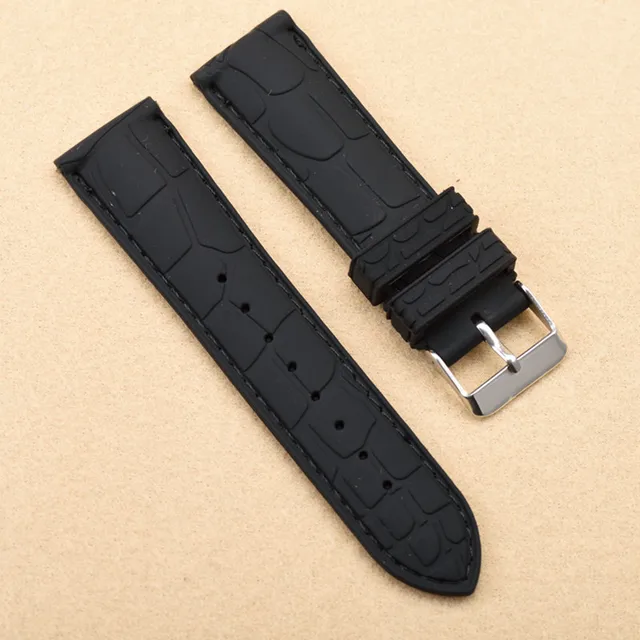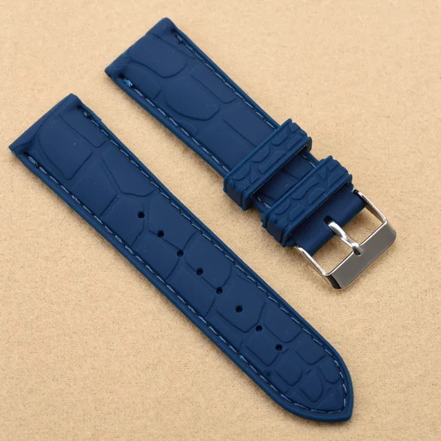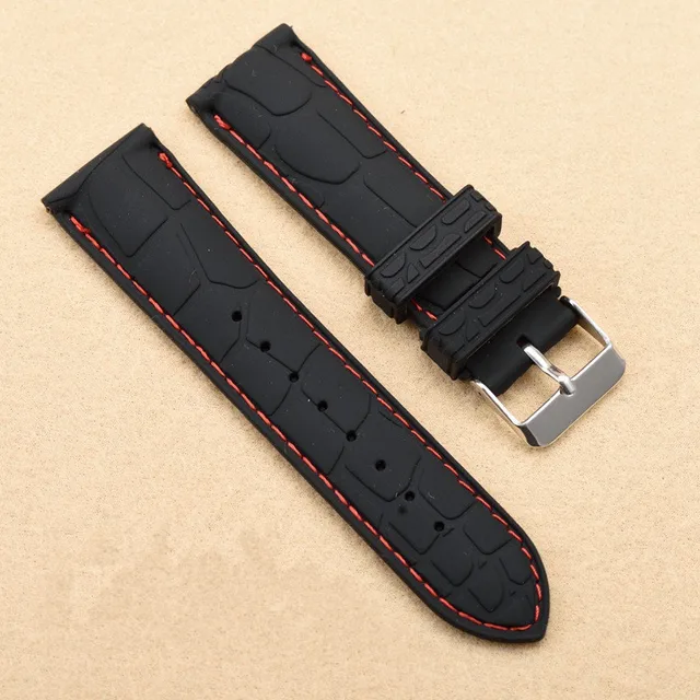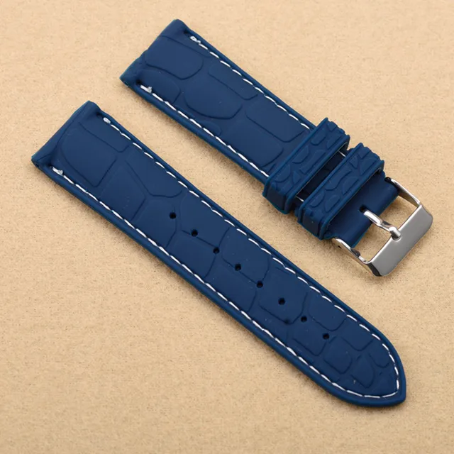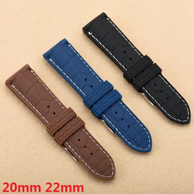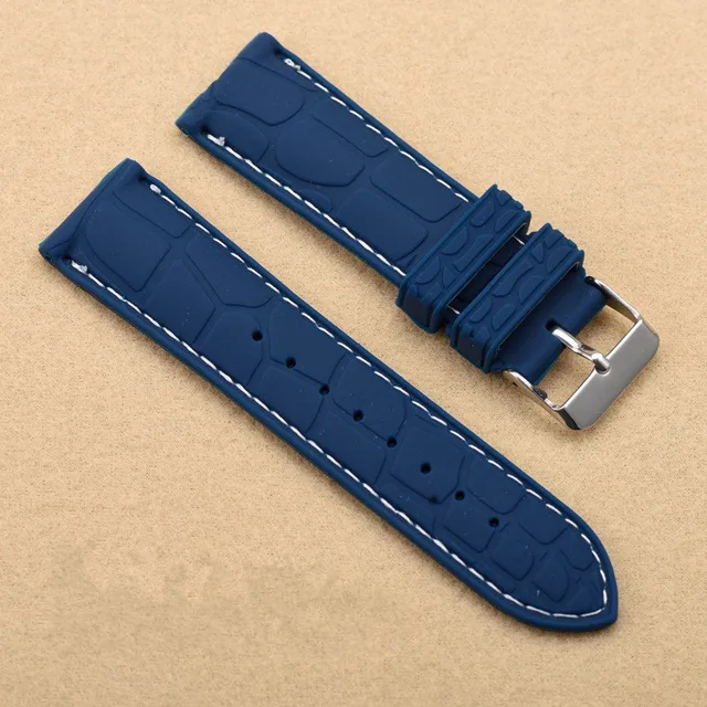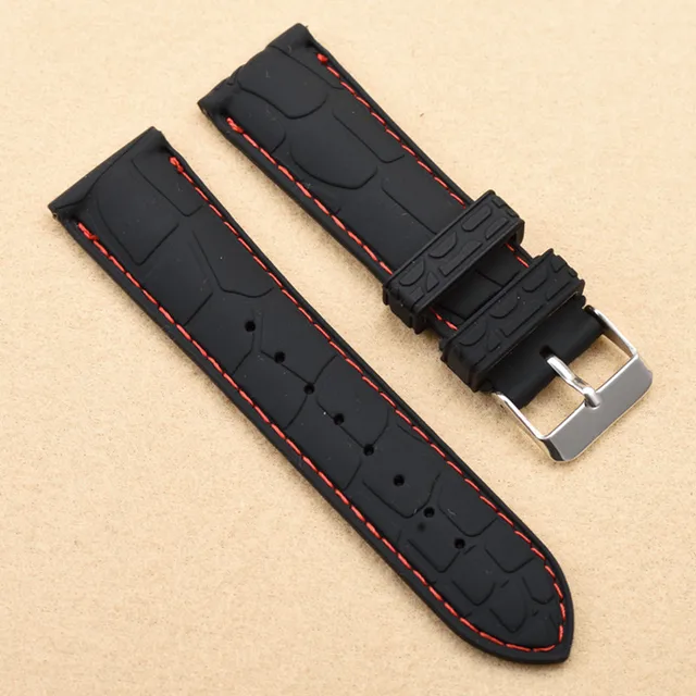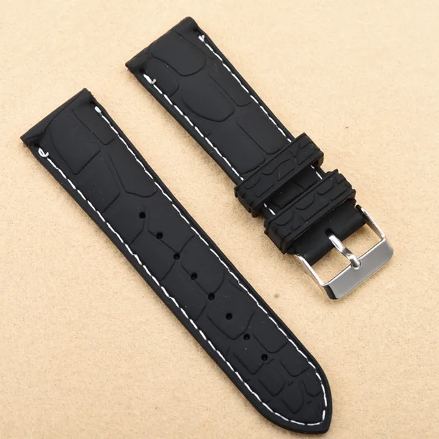 | [해외]20 미리메터 22 미리메터 새로운 블랙 방수 다이빙 실리콘 고무 손목 시계 밴드 스트랩 실버 버클 블랙/화이트/블루 라인 바느질 |