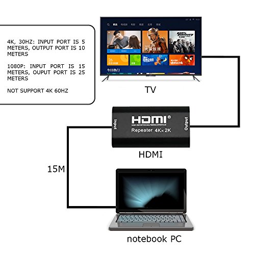Onlier Signal Amplifier Booster Adapter regenerates the incoming HDMI signal by decoding and re-encoding it to a new standard HDMI signal so it can extend the transmission range without degradation. Recommend customer use HDMI1.4 cable, ensure extend distance.