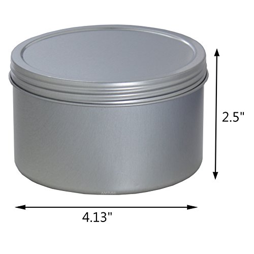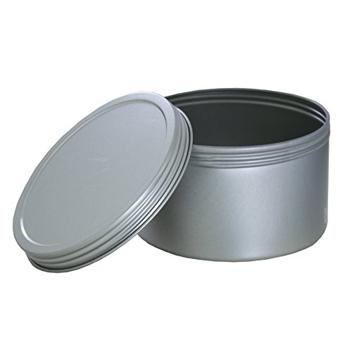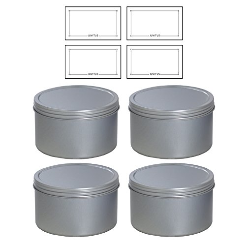 Silver Deep Metal Tin Containers with Screwtop Twist Lids 16 oz (4 Pack) + Labels