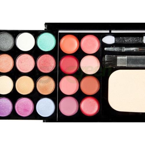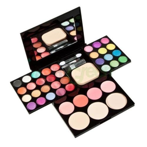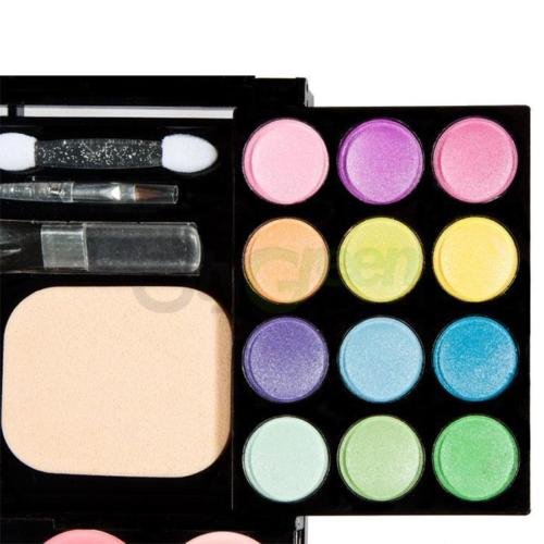 Feature : Dimensions: (5.7 x 4.33 x 1.18)" / (14.5 x 11 x 3)cm (L x W x H) / Eye Shadow Powder Diameter: 0.78" / 2cm Powder Diameter: 1.77" / 4.5cm Blusher Diameter: 1.25" / 3.2cm / Fully-equipped cosmetic kit with blusher, lipstick, powder and eyeshadow included / Compact size, lightweight and easy to carry with / Eye Shadow Powder Color: 12 Kinds of Colors