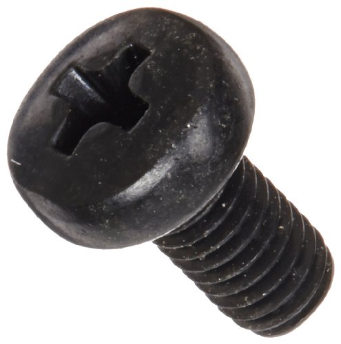 Steel Pan Head Machine Screw, Black Oxide Finish, Meets DIN 7985, #1 Phillips Drive, M3-0.5 Thread Size, 6 mm Length, Fully Threaded, Import (Pack of 100)
