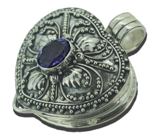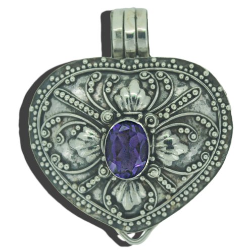 Prayer Poison Box Heart Shaped Amethyst Sterling Silver 925 Pendant