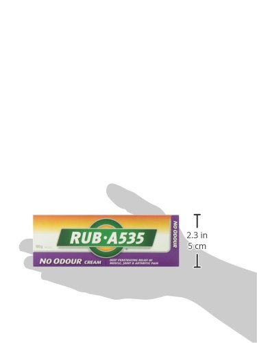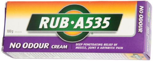 -. Binding : Health and Beauty -. Brand : Rub A535 -. Feature : Deep Penetrating Relief of Muscle Joint and Arthritic Pain / For Relief from Stiff & Sore Muscles, Back Pain, Strains & Sprains / Non-greasy and Odourless / Starts to work on contact / Made in Canada -. IsAdultProduct : 0 -. Label : Church & Dwight Canada -. LegalDisclaimer : Product may not be exactly as shown. Please refer to product description for details. -. Manufacturer : Church & Dwight Canada -. PackageQuantity : 1 -. ProductGroup : Health and Beauty -. ProductTypeName : HEALTH_PERSONAL_CARE -. Publisher : Church & Dwight Canada -. Studio : Church & Dwight Canada -. Title : RUB A535 NO ODOUR CREAM For Relief of Arthritic Pain, Muscle Pain, Joint & Back Pain 100 g Tube