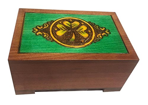 Celtic Shamrock Wood Polish Jewelry Keepsake Box Irish