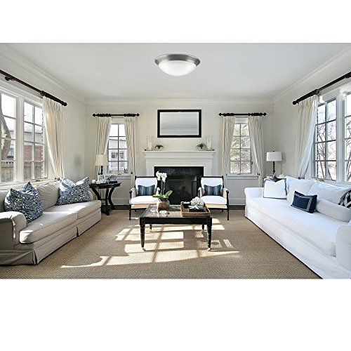 Enhance all types of design This simple ceiling light has a brushed nickel finish. Its glass cover highlights signature piece and luxury features,which meets your requirement of better visual effect.