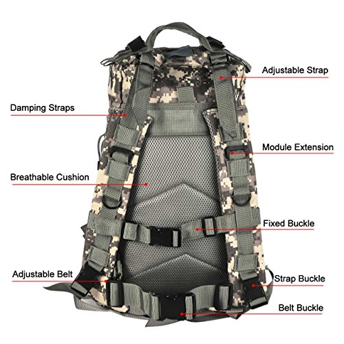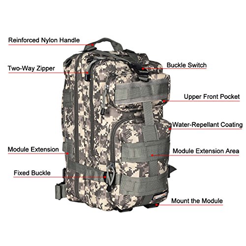 -. Title : Eyourlife Military Tactical Backpack Small Rucksacks Hiking Bag Outdoor Trekking Camping Tactical Molle Pack Men Tactical Combat Travel Bag 20L