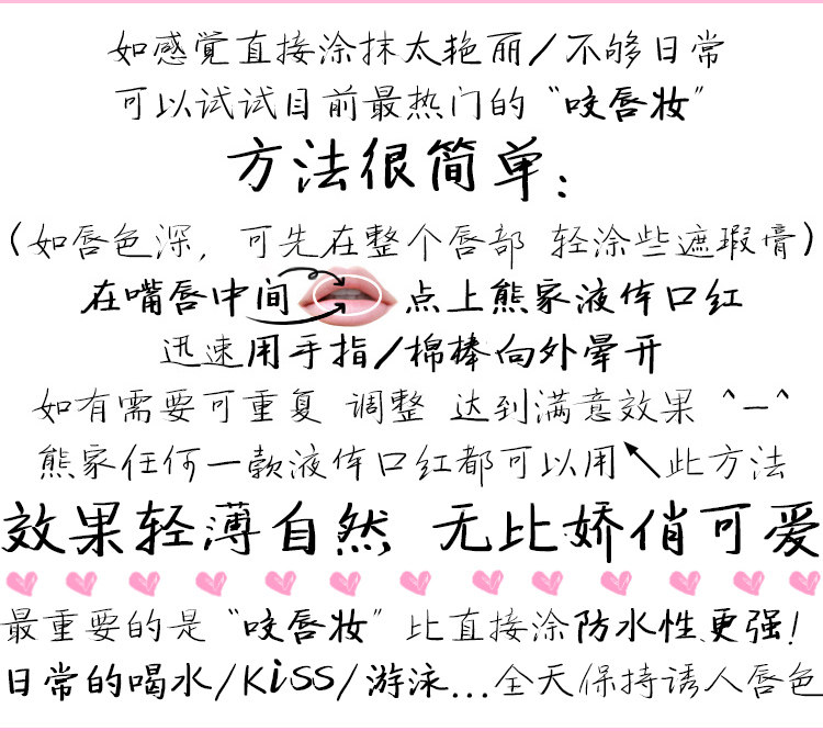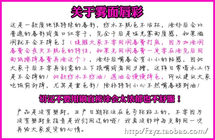 防水不脱色请注意口红涂好干后尽量不要再上下抿嘴