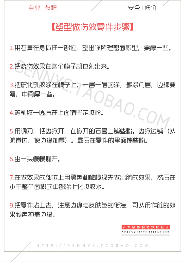 【塑型做伤效零件步骤】 ①用石膏在身体任一部位,塑出你所理想面积的型,要厚一些。