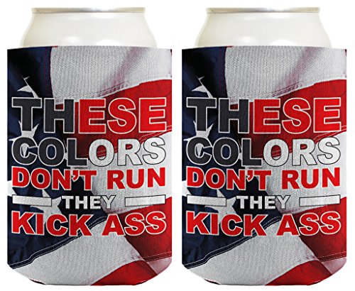 Funny Beer Coolie 4th July Colors Don't Run Kick Ass Murica 2 Pack Can Coolies