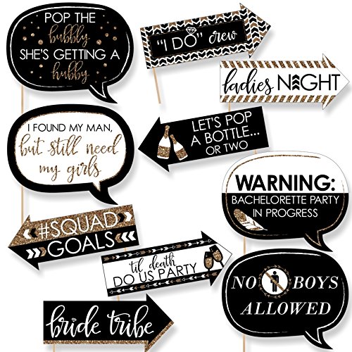10-Piece Funny Bride Tribe Photo Booth Props Kit INCLUDES 10 Bridal Shower or Bachelorette arrow and speech bubble photo booth props, 10 wooden dowel sticks and adhesives for assembly. EASY ASSEMBLY: Simply attach the printed DIY photo booth props to the wooden dowels with included adhesive and reinforcing stickers.