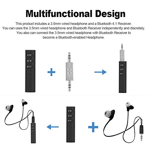 [다기능디자인] 이 제품에는,3.5mm와이어 드 헤드폰과 Bluetooth 4.1리시버가 포함되어 있습니다. 3.5mm의 유선 헤드폰과 Bluetooth Receiver를 독립해 개별로 사용하는 것 를 할 수 있습니다. 3.5mm와이어 드 헤드폰을 Bluetooth Receiver와 접속하고, Bluetooth대응 헤드폰으로 할 수도 있습니다