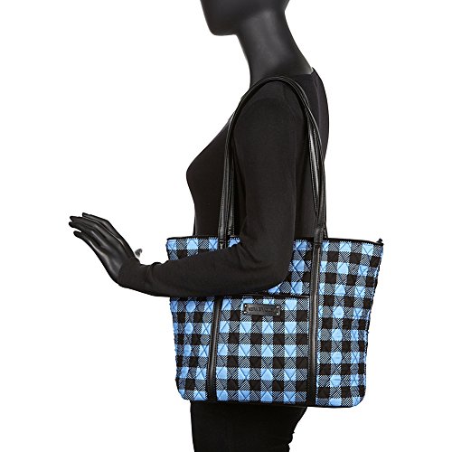 Zipper closure. Dual flat carrying straps. Exterior front slip pocket. Exterior back zip pocket. Signature logo embossed hardware detail in front. Flat base to provide upright structure. Lining made of polyester. Interior multifunctional slip pockets.