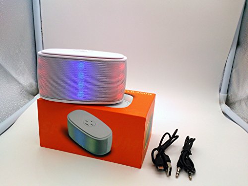 -. Feature : Stream all your digital media from any Bluetooth devices including iPhone 5, 4S, Galaxy S4, S3, iPads, Galaxy Tab, and more / Built-in Li-Ion Rechargeable Battery for a long playtime. Built-in microphone for hands-free speaker phone calling Easy to pair - No code/pin needed. / Build in Mp3 player included, it could automatically play the music with a USB drive or a TF card . (the drive and card does not include in the package) / 3.5mm audio line in and USB input acceptable. Support MP3, WMA, WAV, APE and FLAC format. / The speaker delivers a full-spectrum audio and clarity at any listening level (up to 20 volume levels). Plus, build-in Mixinno F class digital high-performance amplifier purifies and enhances sound quality of both treble, alto and bass of all styles of music.