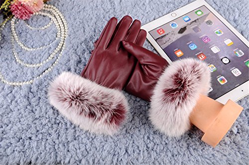Product DescriptionFeatures: 100% Brand new high-quality Material: PU Color: Black Size: all yards (long 22.2cm, Palm width 18cm) Uses: Driving gloves and warm in winter Package include: 1 Women leather Gloves Autumn Winter Warm Rabbit Fur gloves Mittens0