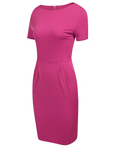 ANGVNS Women 1950s Vintage Short Sleeve Boat Neck Pencil Dress with Pockets