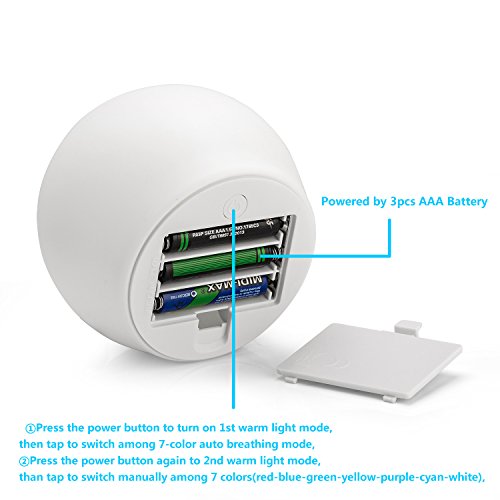 - ★[7-Color Breathing Mode]: Press the power button to turn on 1st warm light mode, and then tap to switch among 7-color auto breathing mode, standby mode and warm light mode successively.