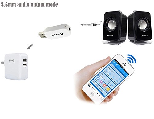 - Feature : Output modes: 3.5mm male to male auxiliary output, streaming music to your speaker wirelessly. Please note the usb is used for power suppy. To make it work, you need to connect the receiver with your speaker with 3.5mm aux cable / Updated bluetooth tech features high quality audio transmission ,Transmit up to 33 feet away with line of sight; Better build quality than the generic ones, much tougher and last longer / Turn your wired stereo system to wireless ,perfect for home stereo and car stereo systems / Powered via USB port , no battery is needed / Blackfriday deal for [Brand new high quality selfie stick] http://www.amazon.com/dp/B013891GOI