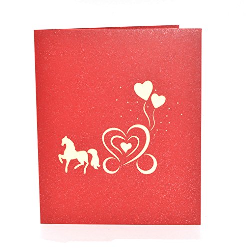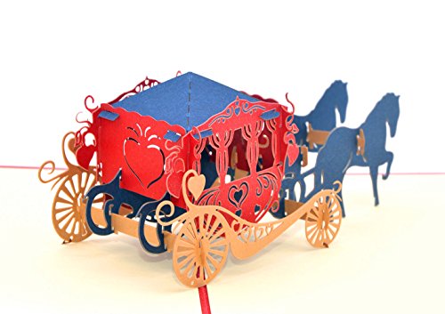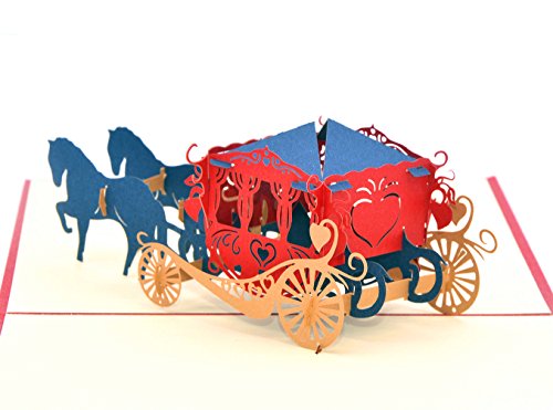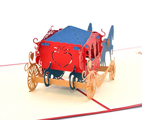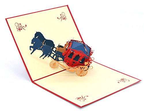 Medigy Vintage Carriage Handmade 3D Pop Up Greeting Cards Invitation Cards for Wedding, Valentines,Lovers,Couple's/ Valentines Day Gifts Cards