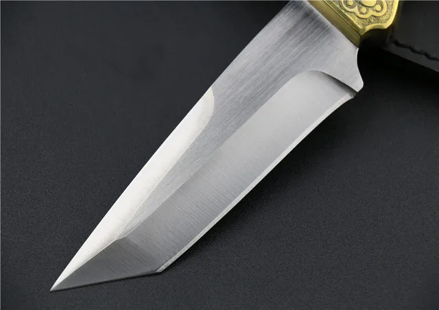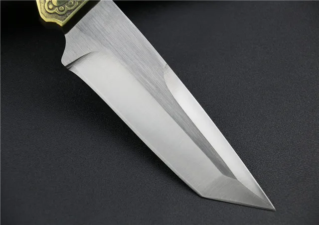 상품 내용 전체 길이: 25.2 센치메터 블레이드 길이: 9.2 센치메터 핸들 길이: 115 미리메터 폭: 35 미리메터 두께: 3 미리메터 가장자리: 5Cr13Wov 무게: 310 그램 (칼 세트) 경도: 상당 56HRC 표면: 샌딩 핸들: 구리 핸들 + 검은 나무 다른: 권총 포장 상세