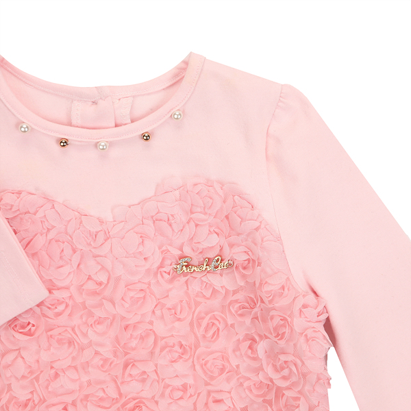 상세설명-핑크 장미 문양으로 장식되어 러블한 롱티셔츠입니다