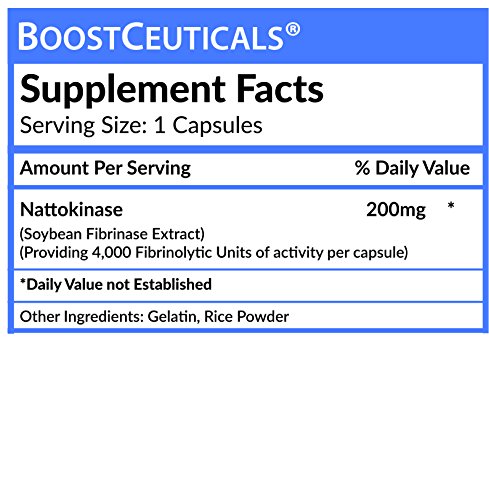 Nattokinase 200 mg 4000 FU Supplement - Natto kinase Natural Blood Thinner from Bacillus Subtilis by Boostceuticals (200)