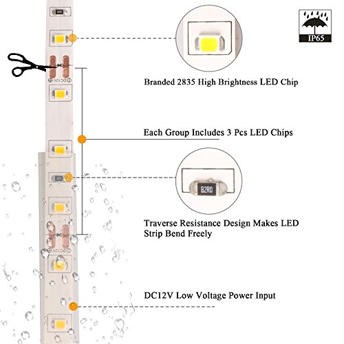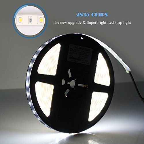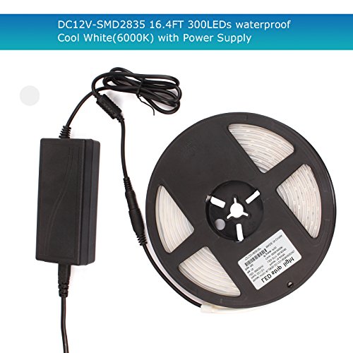 Superbright and Low Consumption:SMD 2835,DC 12v, Cool White 6000k Lighting, 16.4FT 5M 300LEDs,Waterproof