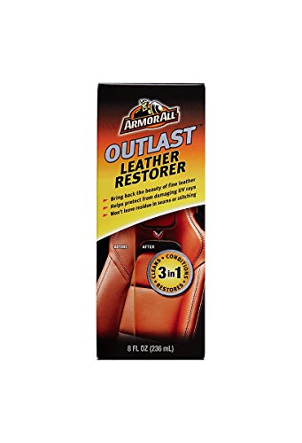 Wear and age can take a toll on your leather interior, robbing it of its natural look and feel. Armor All Outlast Leather Restorer can help rejuvenate and bring back the original beauty to damaged or aged leather. Fortified with special cleansers and conditioners, this formula penetrates deep into the leather membrane to remove dirt and soils while replenishing the natural oils and moisture that can be lost over time. UV inhibitors offer additional protection from heat and sunlight, which can cause drying, fading and premature aging, to keep your leather interior looking beautiful.