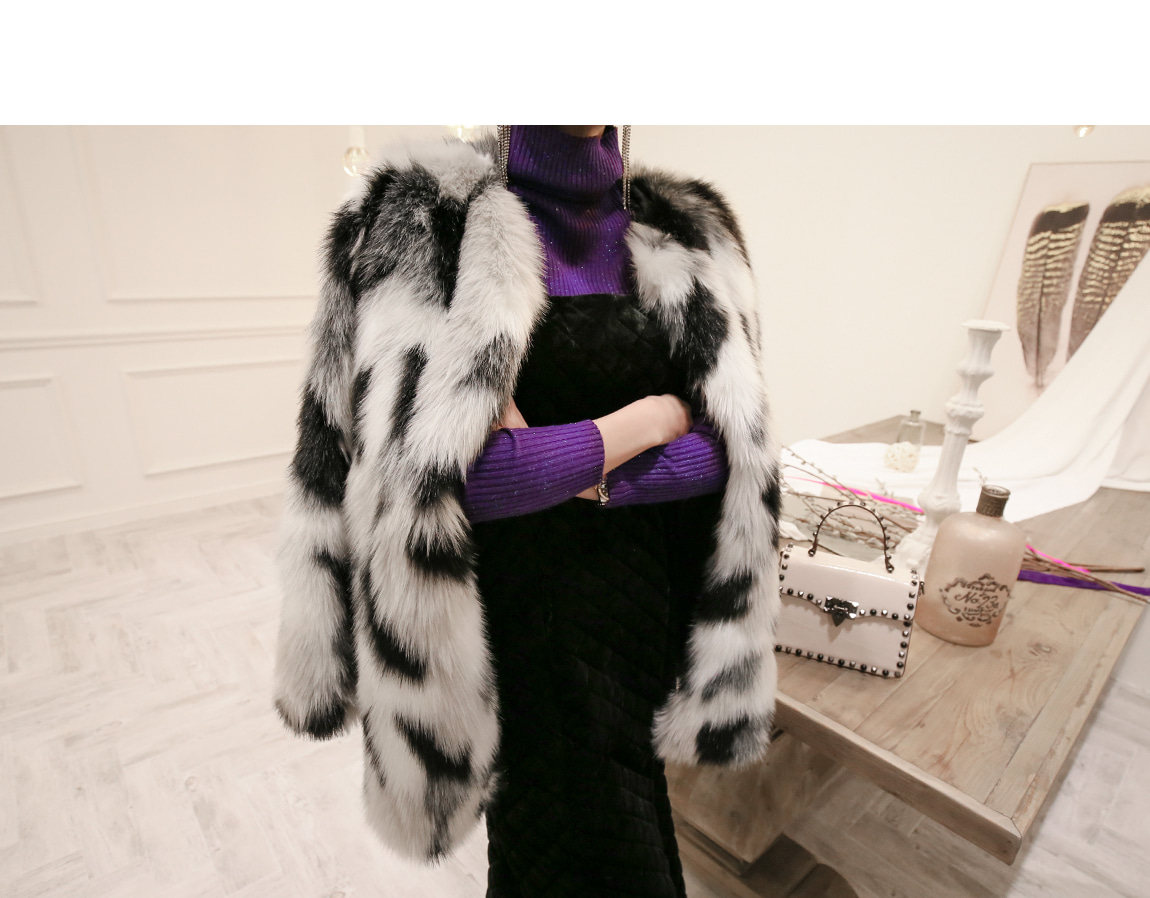 화려한 레오파드 페턴의 퍼 자켓이에요