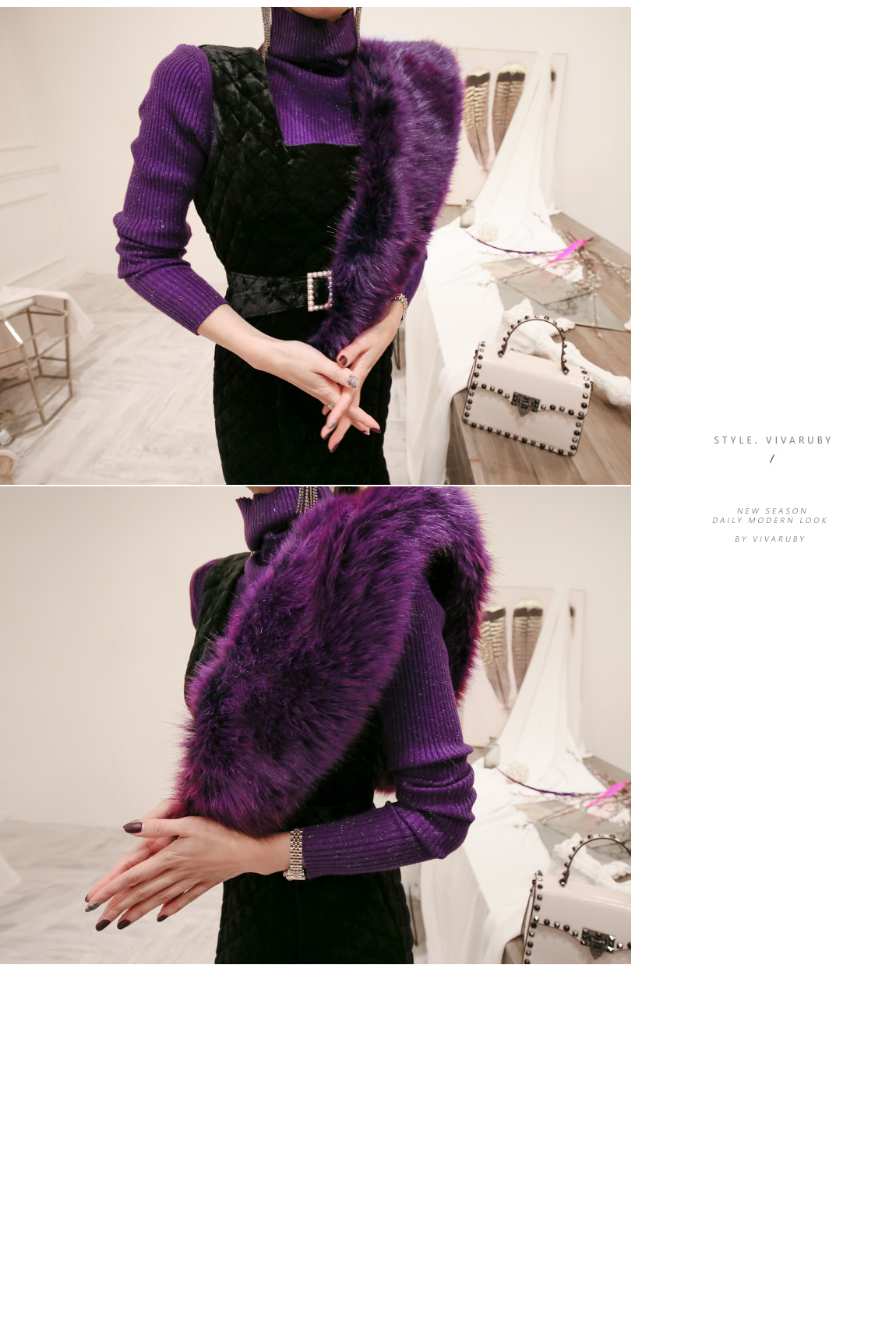 전체적인 인조퍼 소재감으로 따뜻하게 착용했어요
