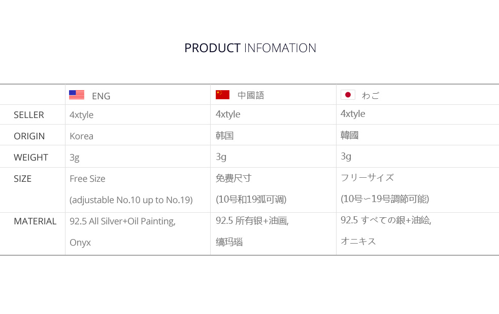안쪽 끝을 교차해서 착용하면 10호까지 줄일수 있고, 최대 19호까지 착용가능합니다~