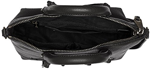 Micro cross-body bag in pebbled finish featuring tassel trims and diagonal zip pockets at front