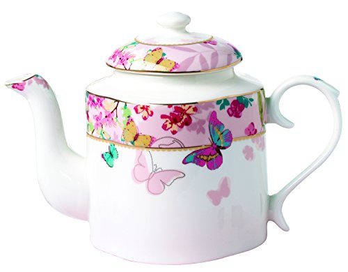 -. Title : Jusalpha Royal Floral Fine Bone China Pink Butterfly Teapot