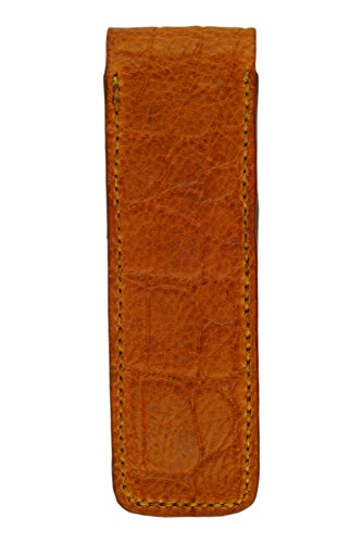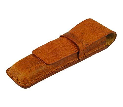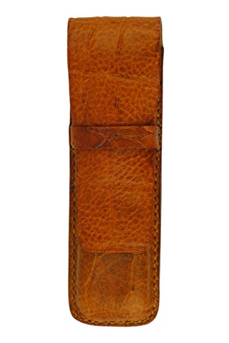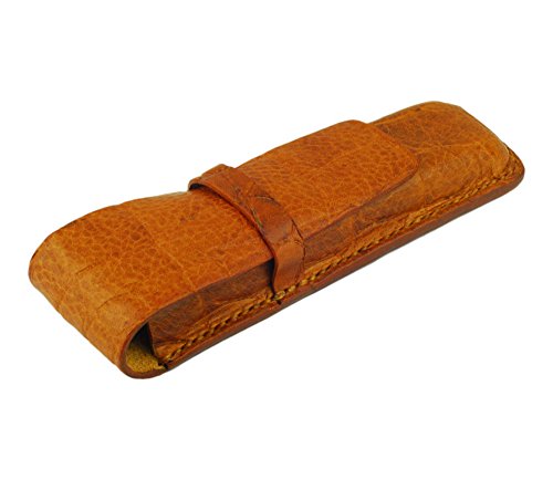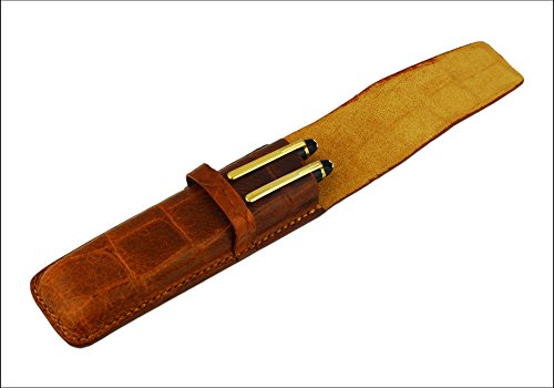 Leather Double Pen Case, Crocodile Grain Leather, Tan, Handmade